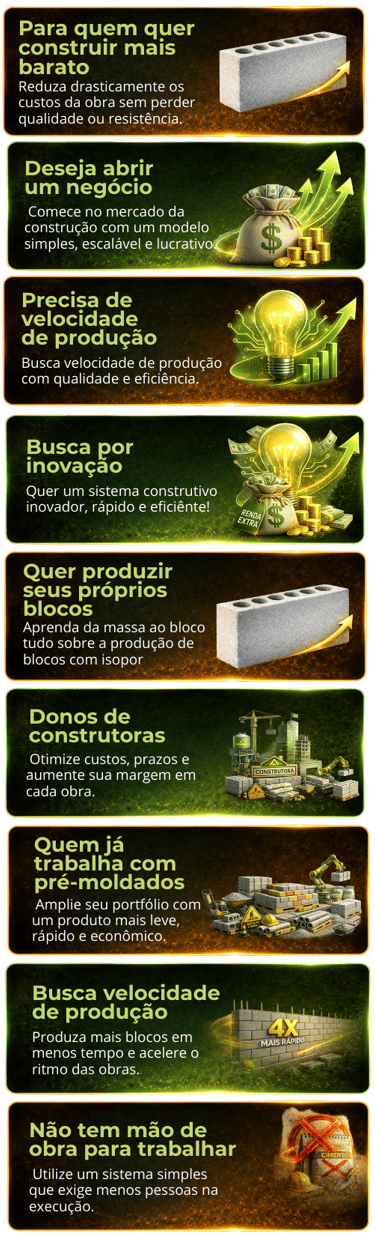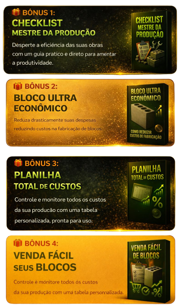 Tenha o passo a passo diário para produzir blocos padronizados, rápidos e com zero erro..
