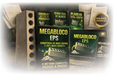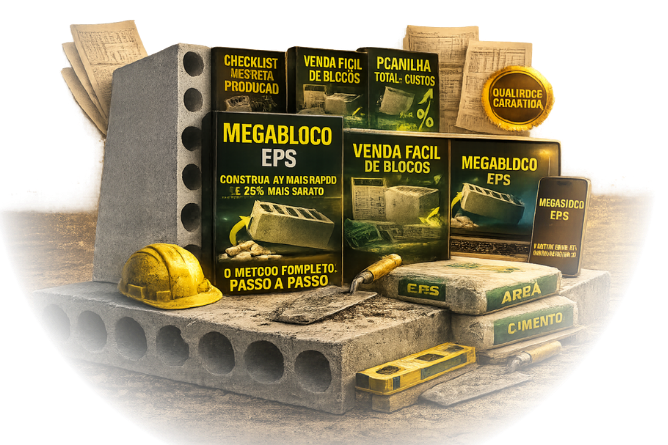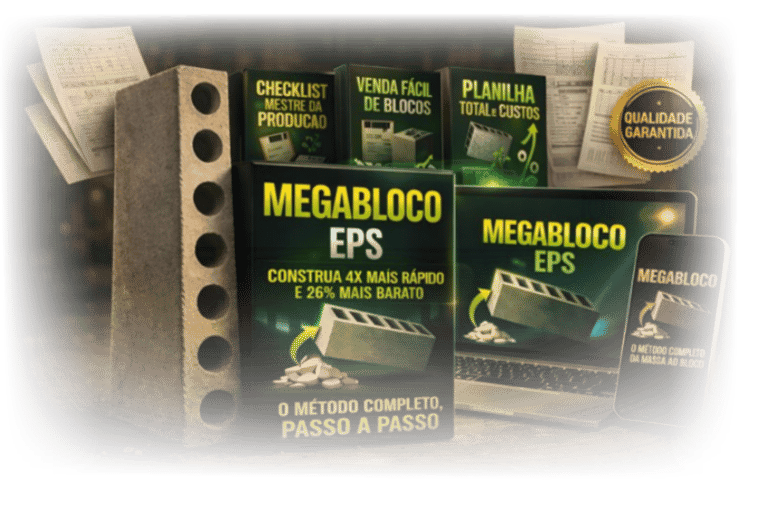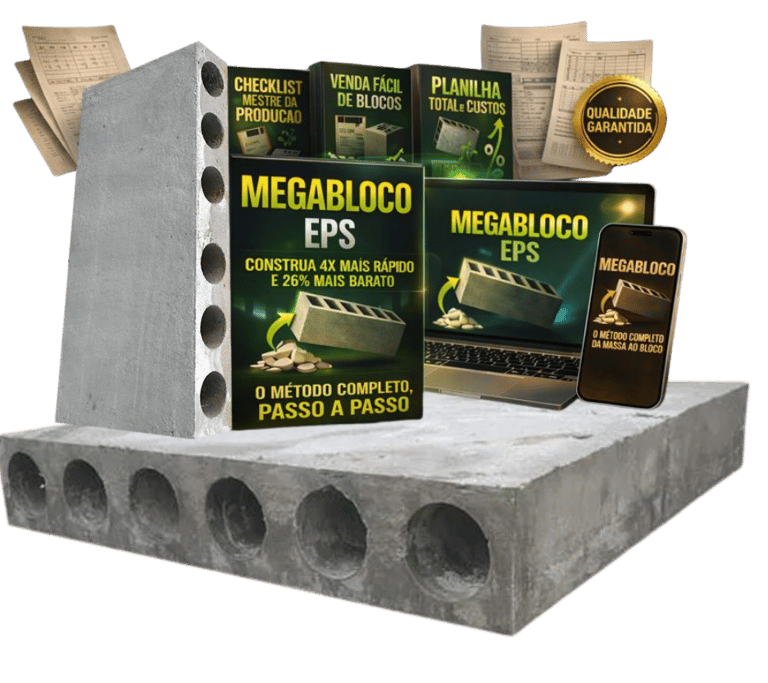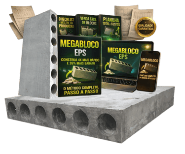Mega Bloco EPS, é uma apostila completa + vídeo explicativo, com o passo a passo definitivo para você produzir blocos de concreto com (ISOPOR) reciclado.